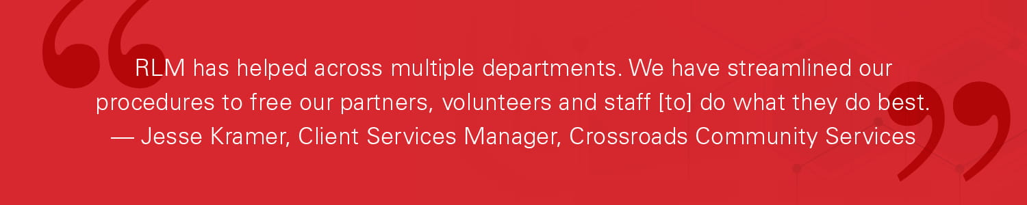 Solution: Introduce Lean Management Procedures Malin was asked to help improve operational inefficiencies by identifying and analyzing wasted time, space, and movement. By leveraging the principles of Raymond Lean Management (RLM), Crossroads Community Services increased the capacity of its new warehouse and implemented technology upgrades throughout other departments.
